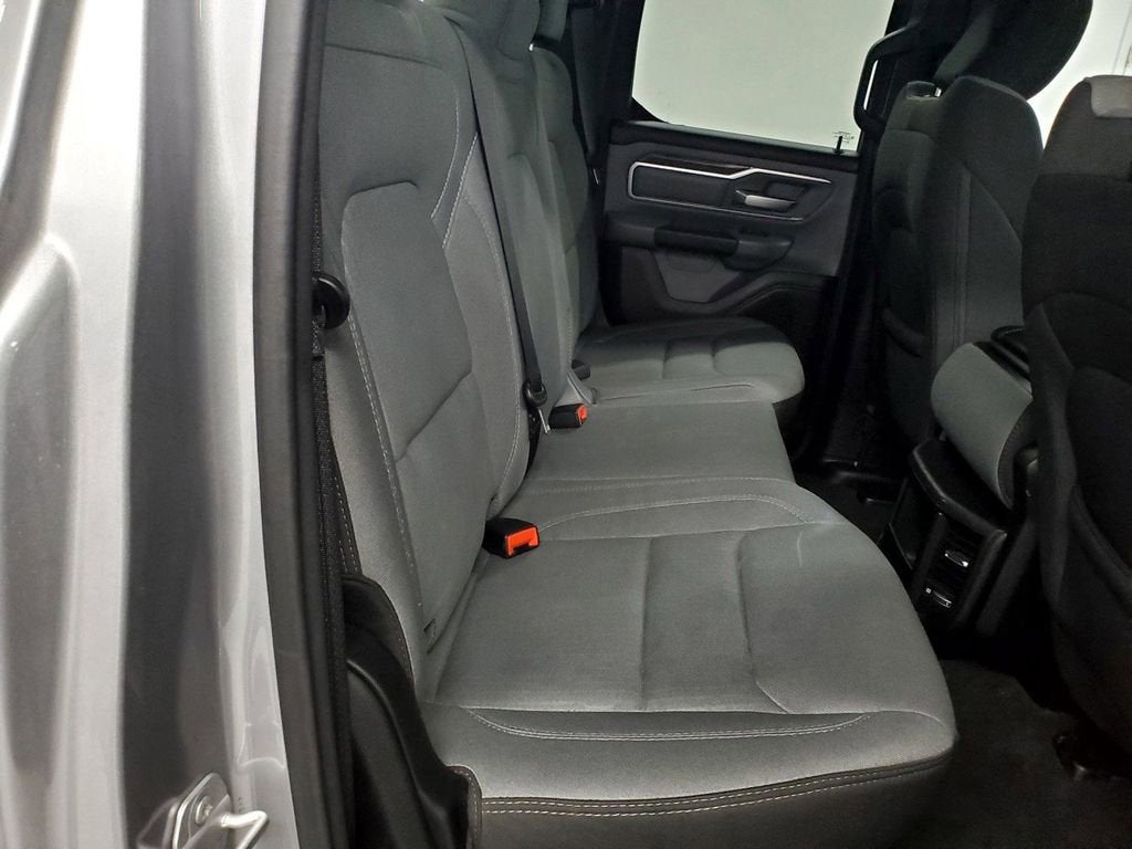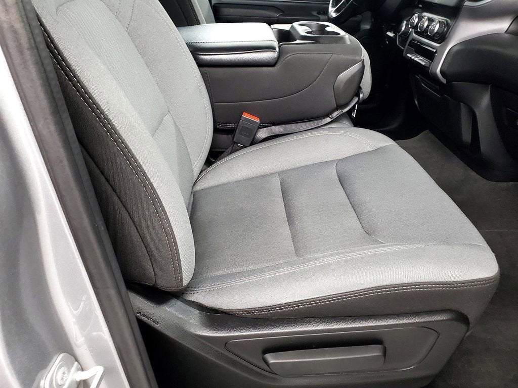 Beyond the impressive list of standard features, this Ram 1500 also boasts a sleek and stylish exterior. The chrome bumpers, black exterior mirrors, and 18-inch cast-aluminum wheels give the truck a bold and confident presence on the road. The interior is equally impressive, with a comfortable cloth bench seat and a split-folding rear seat that provides ample space for passengers and cargo.