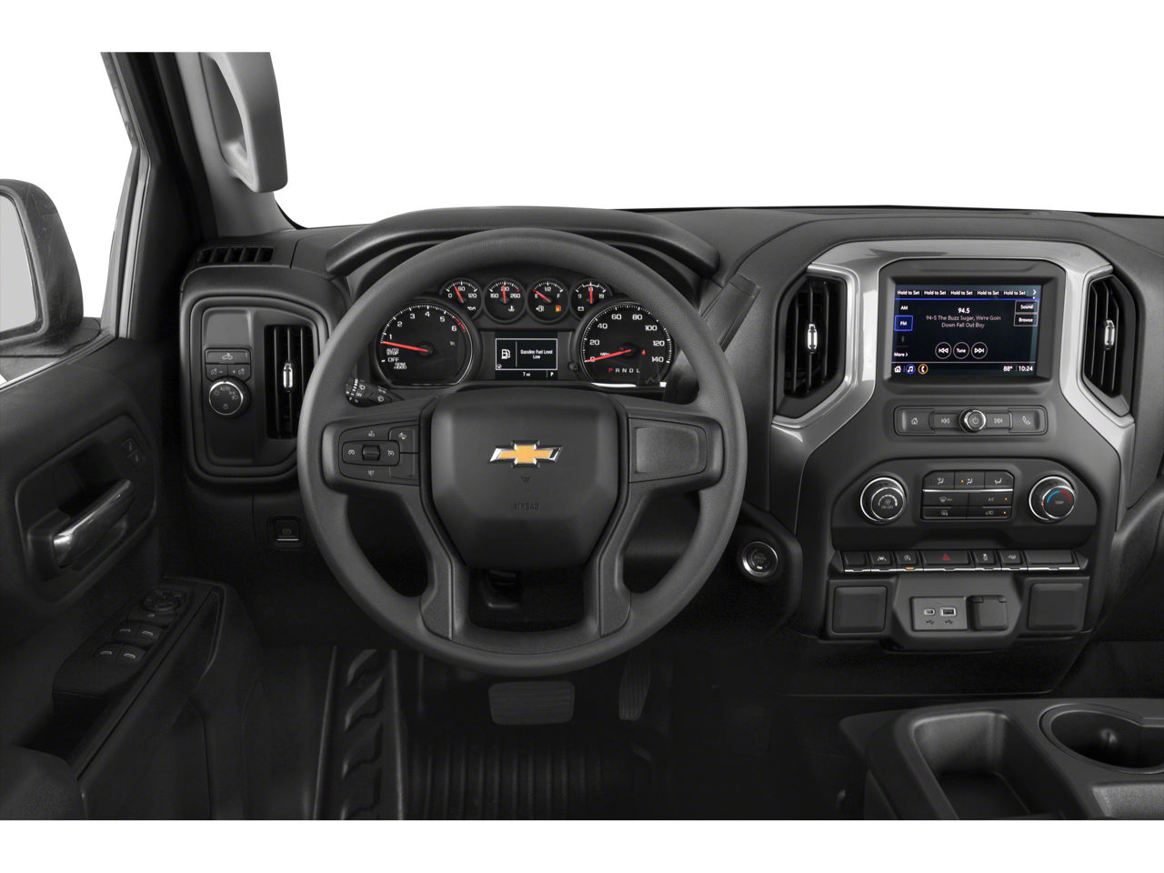 Wireless phone projection for apple carplay and android auto|wi-fi hotspot capable (terms and limitations apply. see onstar.com or dealer for details.)|audio system, chevrolet infotainment 3 system 7 diagonal hd color touchscreen, am/fm stereo, bluetooth audio streaming for 2 active devices, voice command pass-through to phone, wireless apple carplay and wireless android auto compatibility|audio system feature, 6-speaker system (requires crew cab or double cab model.)|bluetooth for phone, connectivity to vehicle infotainment system|cargo tie downs (12), fixed rated at 500 lbs per corner|glass, solar absorbing, tinted|cornerstep, rear bumper|mirrors, outside manual, black (standard on crew cab and double cab models only. not available on regular cab models.)|headlamps, halogen reflector with halogen daytime running lamps|wheels, 17 x 8 (43.2 cm x 20.3 cm) ultra silver painted steel|bumpers, front, black (semi-gloss)|tailgate, gate function manual, no ez lift|tire carrier lock, keyed cylinder lock that utilizes same key as ignition and door|tailgate, standard|intellibeam, automatic high beam on/off|tires, 255/70r17 all-season, blackwall|lamps, cargo area, cab mounted integrated with center high mount stop lamp, with switch in bank on left side of steering wheel (incandescent on regular cab models, led on crew cab and double cab models)|tailgate, locking utilizes same key as ignition and door (removed when (qt5) ez lift power lock and release tailgate is ordered.)|wheel, 17 x 8 (43.2 cm x 20.3 cm) full-size, steel spare|bumpers, rear, black (semi-gloss)|tailgate and bed rail protection cap, top|taillamps with incandescent tail, stop and reverse lights|tire, spare 255/70r17 all-season, blackwall (included with (qbn) 255/70r17 all-season, blackwall tires.)|door handles, black|door locks, power|instrument cluster, 6-gauge cluster featuring speedometer, fuel level, engine temperature, tachometer, voltage and oil pressure|air vents, rear, heating/cooling (not available on regular cab models.)|mirror, inside rearview, manual tilt|remote keyless entry, with 2 transmitters|window, power front, passenger express down|power outlet, front auxiliary, 12-volt|seat adjuster, driver 4-way manual|seat trim, vinyl|usb ports, 2, charge/data ports located on instrument panel|steering column, tilt-wheel, manual with wheel locking security feature|window, power front, drivers express up/down|floor covering, rubberized-vinyl (not available with lpo floor liners.)|windows, power rear, express down (not available with regular cab models.)|driver information center, 3.5 diagonal monochromatic display|air conditioning, single-zone manual|seat adjuster, passenger 4-way manual|steering column lock, electrical|exterior temperature display located in radio display|assist handles front a-pillar mounted for driver and passenger, rear b-pillar mounted|cruise control, electronic with set and resume speed, steering wheel-mounted|compass located in instrument cluster|seats, front 40/20/40 split-bench with covered armrest storage and under-seat storage (lockable)|steering wheel, urethane|seat, rear 60/40 folding bench (folds up), 3-passenger (includes child seat top tether anchor) (requires crew cab or double cab model.)|transmission, 8-speed automatic, electronically controlled with overdrive and tow/haul mode. includes cruise grade braking and powertrain grade braking (included and only available with (l3b) turbomax engine. requires (az3) front 40/20/40 split-bench seats.)|durabed, pickup bed|frame, fully-boxed, hydroformed front section|recovery hooks, front, frame-mounted, black|alternator, 220 amps (included with (l3b) turbomax engine, (vyu) snow plow prep package, (5w4) special service package or (9c1) police pursuit package.)|automatic stop/start (not available with (5w4) special services package, (9c1) police pursuit package or (fhs) e85 flexfuel capability.)|brakes, 4-wheel antilock, 4-wheel disc with duralife rotors|suspension package, standard|engine, turbomax (310 hp [231 kw]